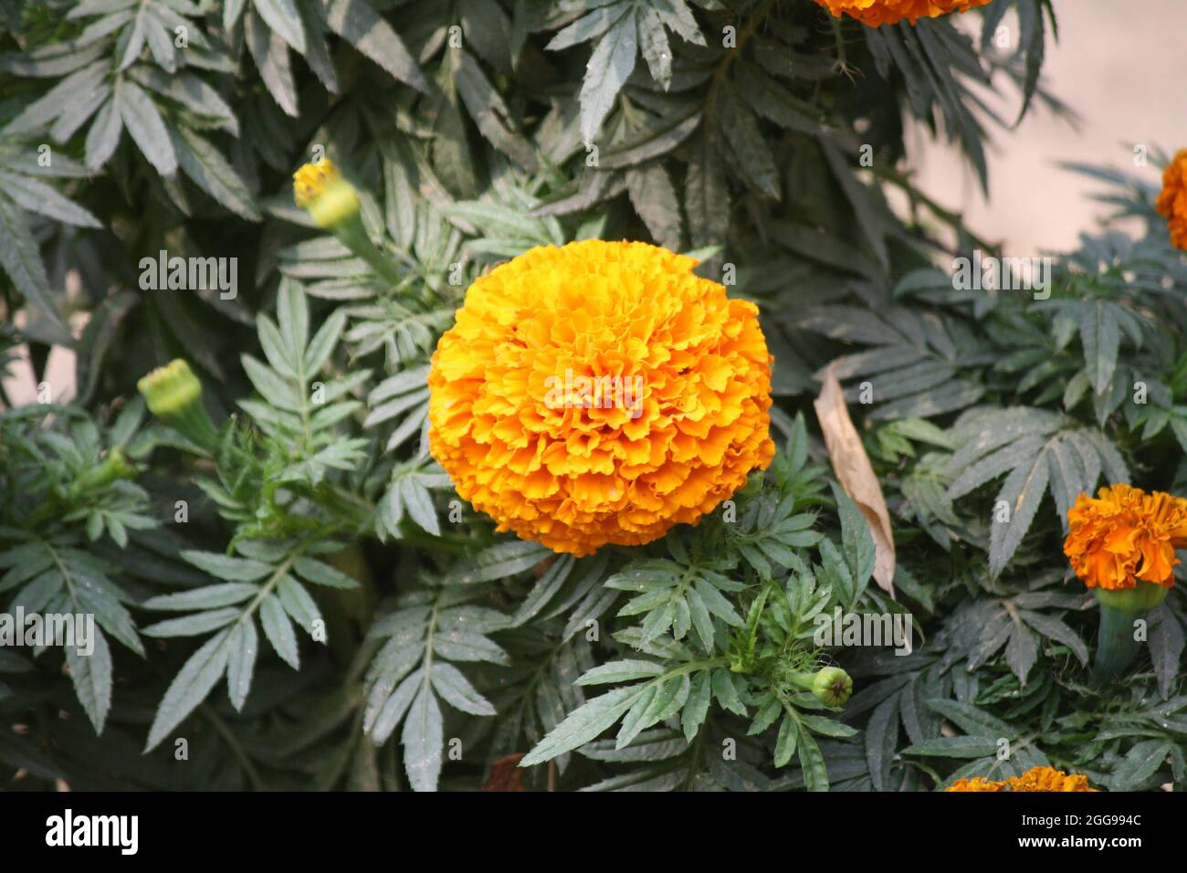 Mexican Marigold Tagetes Erecta Flowers In A Garden Stock Photo Alamy